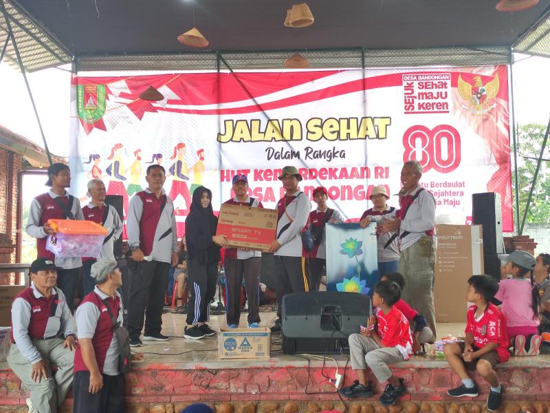 Dengan suasana penuh keceriaan, kegiatan jalan sehat ini menjadi salah satu rangkaian acara peringatan HUT RI ke-80 yang paling dinanti warga Desa Bandongan.