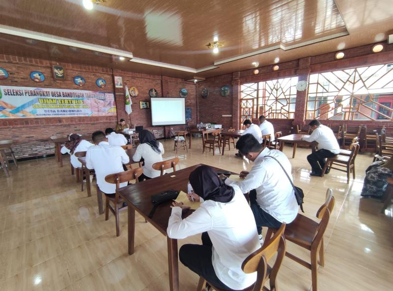 Kegiatan ujian tertulis dilaksanakan di Balai Desa Bandongan dengan pengawasan ketat dari panitia seleksi, pengawas independen, serta perwakilan dari Kecamatan Bandongan. Ujian dimulai pada pukul 09.00 WIB dan berjalan dengan tertib, lancar, serta sesuai tata tertib yang telah ditetapkan.