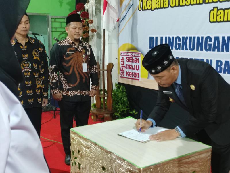 Acara pelantikan dipimpin langsung oleh Kepala Desa Bandongan yang sekaligus mengambil sumpah jabatan. Dalam sambutannya, Kepala Desa menyampaikan ucapan selamat kepada perangkat desa yang baru dilantik, serta mengingatkan pentingnya amanah dan tanggung jawab yang diemban dalam melayani masyarakat.